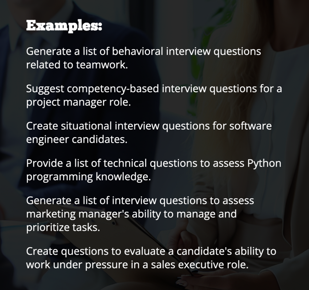 🚀 Expertly Designed ChatGPT Prompts: Harness the potential of artificial intelligence with expertly designed ChatGPT prompts that facilitate the creation and enhancement of every phase in your candidate assessment journey, captivating top-notch talent.